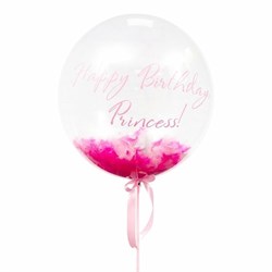 Прозрачный шар Bubble с надписью "Happy Birthday Princess" и розовыми перьями
