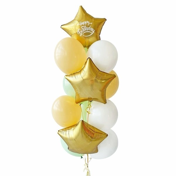 Представляем вашему вниманию уникальную связку шаров с золотой звездой и надписью! Связка: 3 звезды сатин золото, на одной белая надпись Happy Birthday 4 зеленых макарун, 3 персик макарун. Эта композиция станет ярким акцентом любого праздника и подарит незабываемые эмоции. Золотая звезда добавляет роскоши и изысканности. Это идеальный подарок для друзей, коллег или близких, который точно не останется без внимания. Закажите сейчас и создайте атмосферу настоящего торжества!